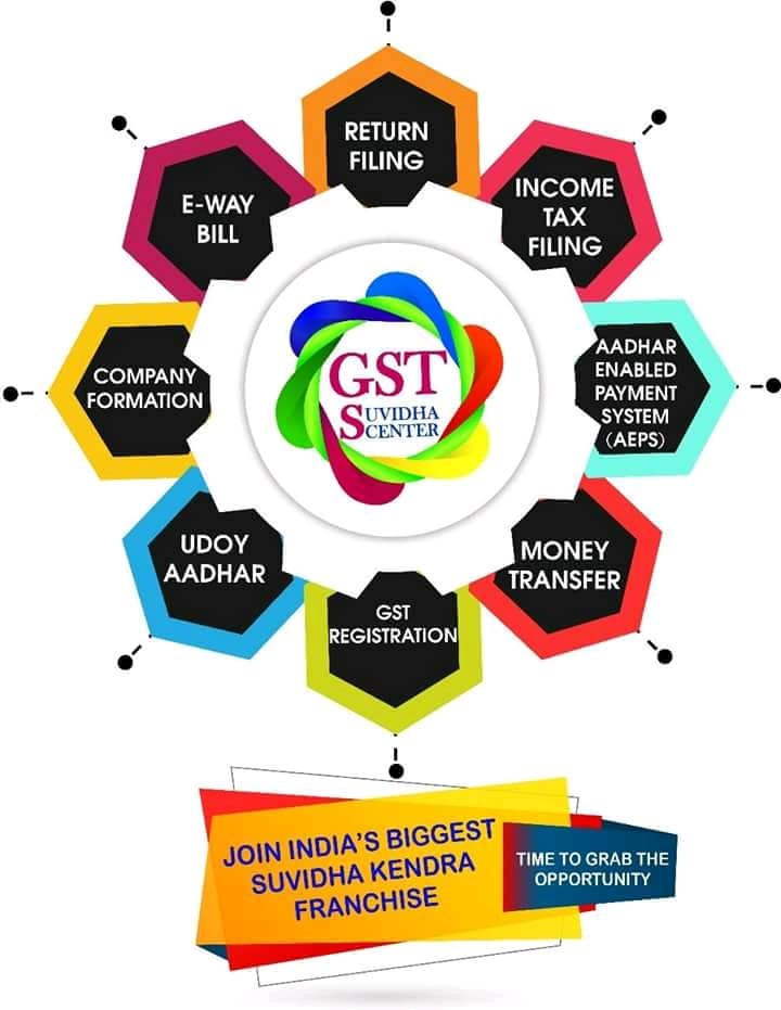 GST Suvidha Provider – GST Return FilingWe are authorized GST Suvidha Providers in India, offering GST Suvidha Kendra franchises, GST Registration Consultants, GST services, GST Return Filing Services, Tax Return Filing Agents, Digital Signature Services, Credit Card Agents, Best GST Suvidha center franchise provider at affordable prices with biggest GST Suvidha Kendra Franchise with 8000+ Centers across India.